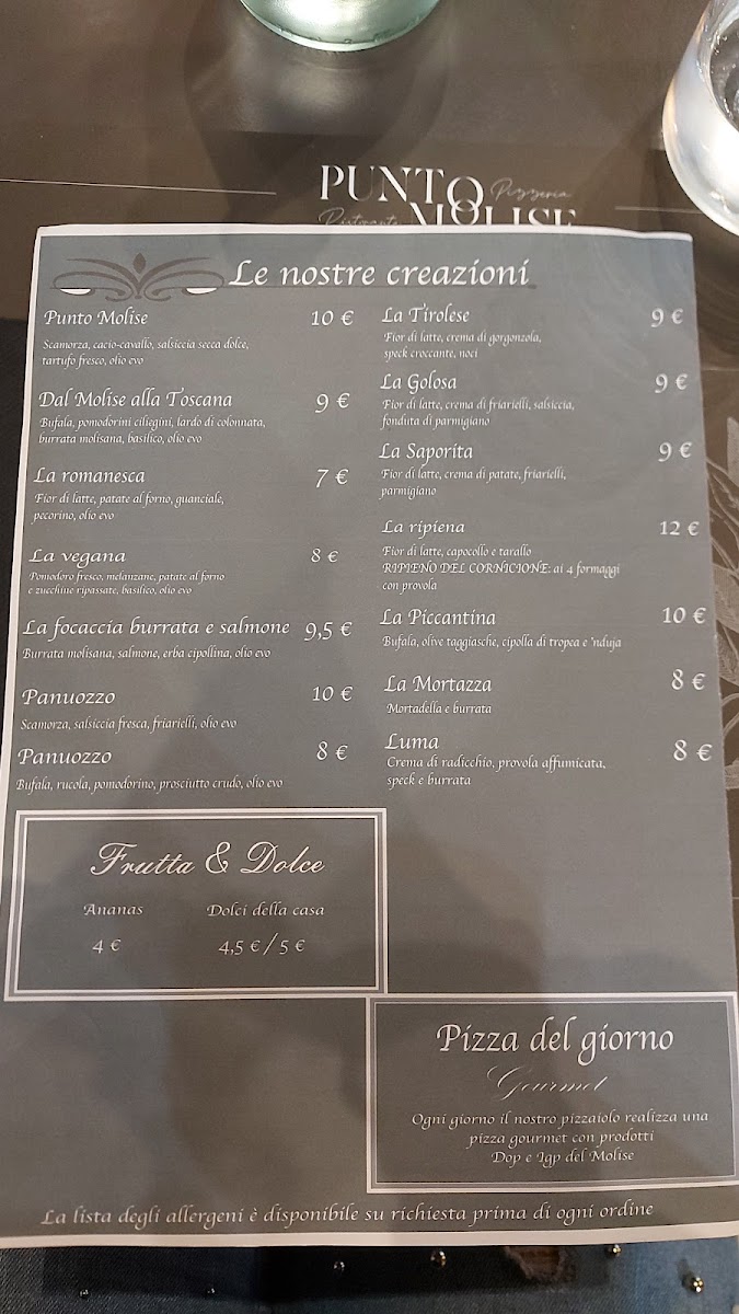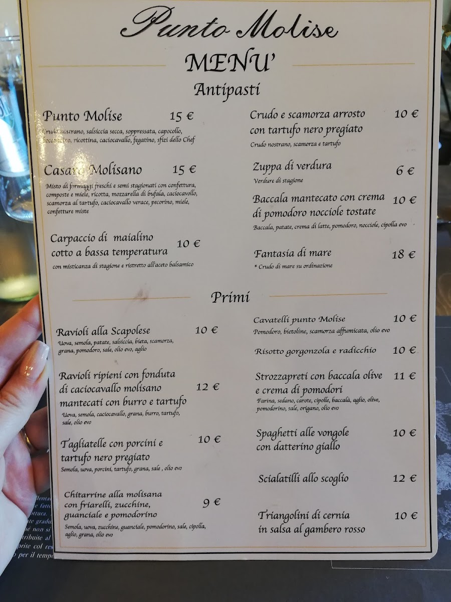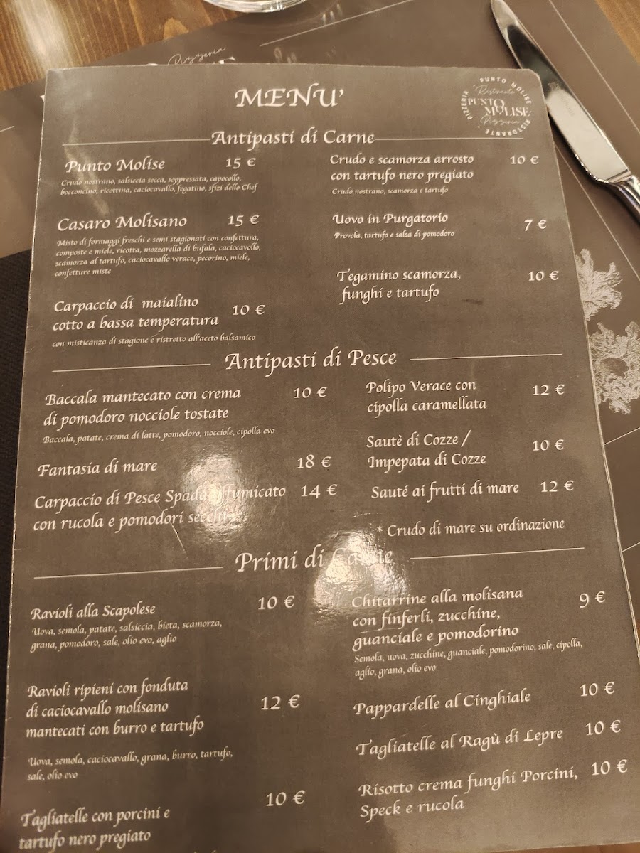 Punto Molise / Casa Molise in Montaquila offers an authentic Italian dining experience anchored in the rich culinary traditions of Molise. The menu shines with expertly prepared secondi like the Tagliata of Pezzata Rossa Italiana, paired perfectly with grana and rucola, and the tender Agnello nostrano alla scottadito. For meat lovers, options such as the Chateaubriand and Filetto Francia promise depth and robust flavors, enriched by local mushrooms and green peppercorn sauce.